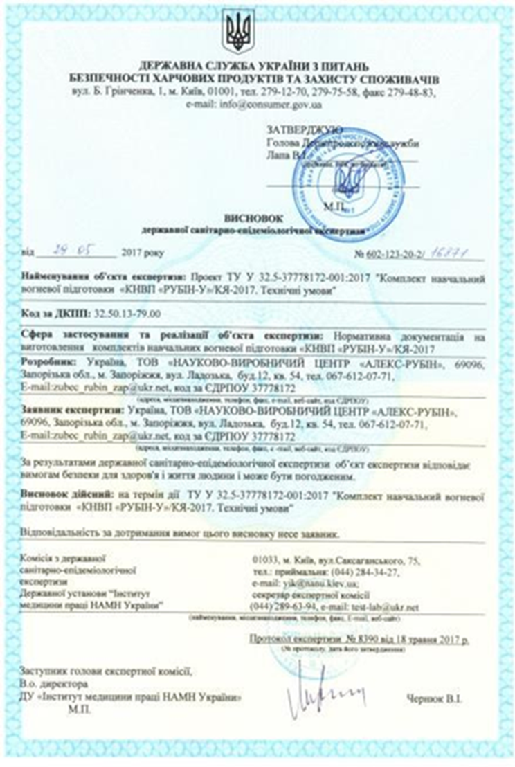 5. Свидетельство Государственной службы экспертного контроля Украины от 04.01.2022;